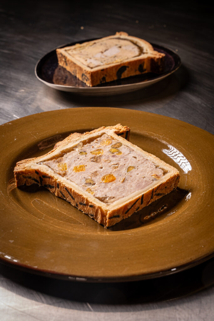 Porc, foie gras, pistache, noisette, figue, abricot